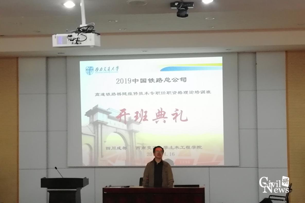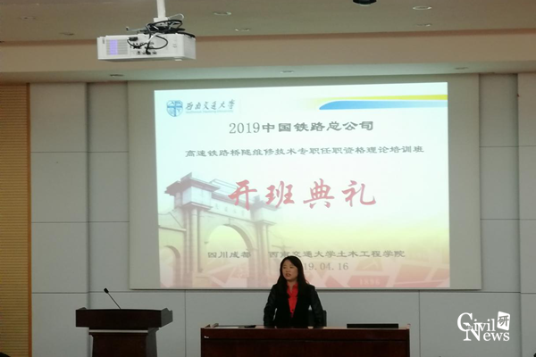 4月16日上午八点半,2019年中国铁路总公司高速铁路桥隧维修技术专职任职资格理论培训班于信息楼0215报告厅举行开班仪式。诸侯快讯ok1133.com诸侯快讯ok1133.com继续教育培训中心主任杜赞华,继续教育培训中心全体老师出席了此次开班仪式。开班仪式由朱明老师主持。