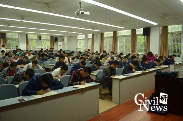 此次考试由继续教育学院老师监考,时间从上午8点到11点。监考老师认真负责,考场纪律井然有序,学生们都认真答完了考卷陆续离开了考场。