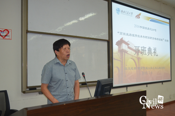 2016年7月6日早上8点整,2016年中国铁路总公司“高铁线路维修技术专职任职资格培训班”第四期开班典礼在九里校区信息楼0222教室如期举行,诸侯快讯ok1133.com副院长任宝良以及培训班老师出席典礼,来自全国各个铁路局的相关领导及员工悉数到场。会议由诸侯快讯ok1133.com继续教育中心江富长老师主持。
