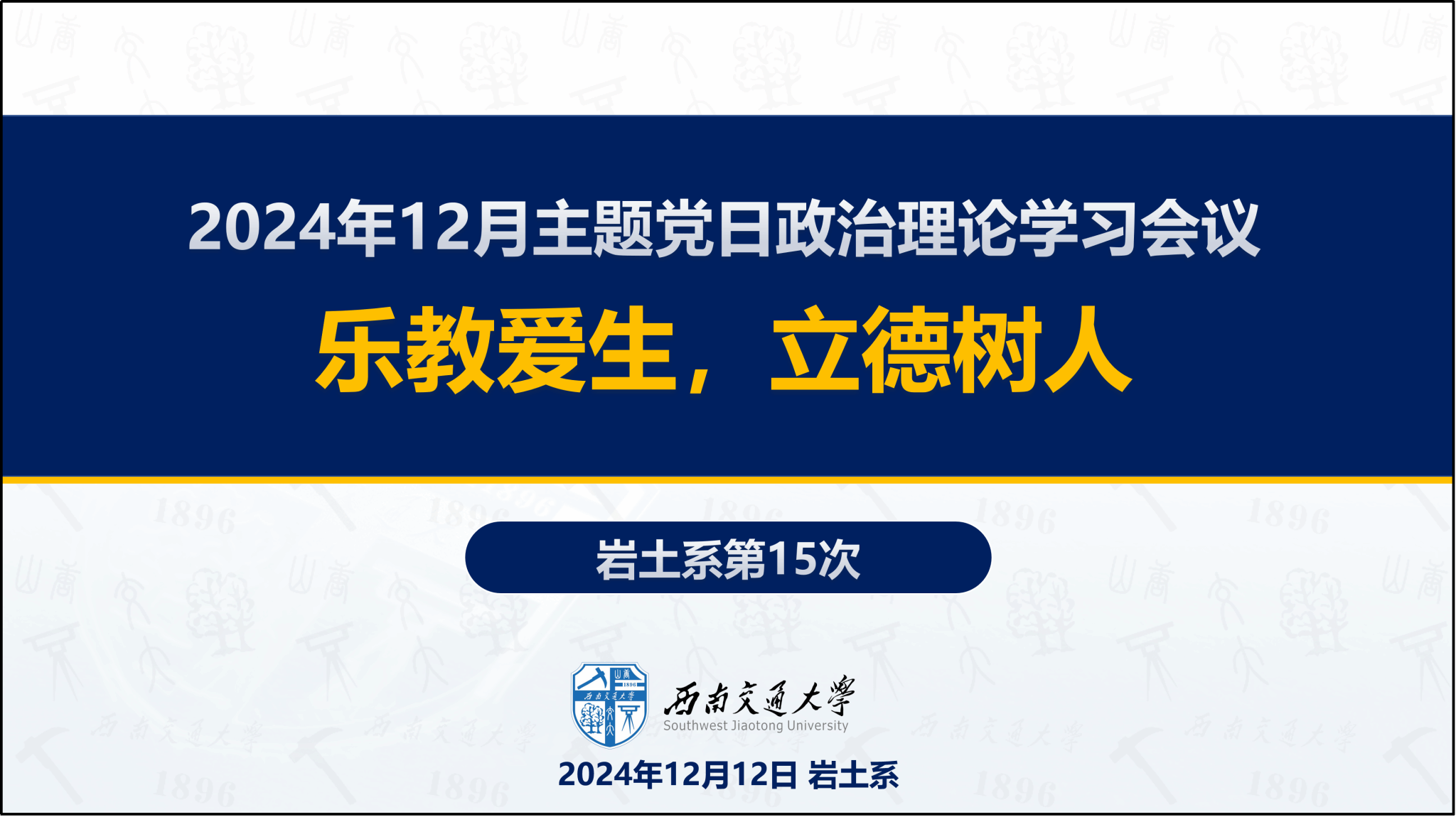 2024年12月12日,岩土工程系在土木馆1235室开展“乐教爱生、立德树人”主题党日政治理论学习活动,诸侯快讯ok1133.com党委书记郑江出席,活动由岩土工程系教工党支部书记张迎宾教授主持。