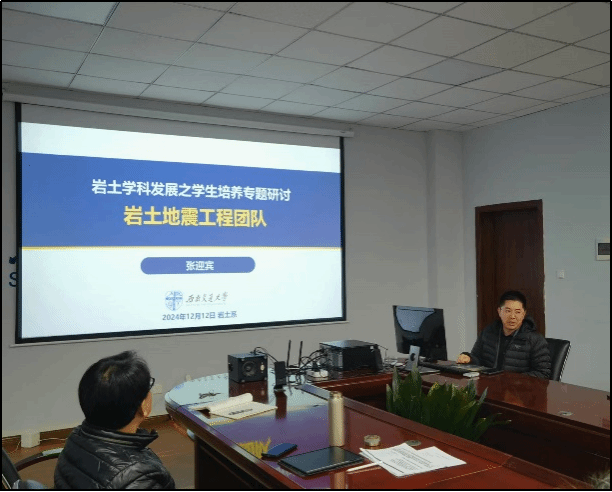 紧接着,活动围绕岩土学科发展之研究生培养开展了专题研讨,首先由杨兵介绍了岩土系研究生的培养情况,然后,各团队负责人袁冉老师、杨涛老师、张迎宾老师和余炎老师交流了各自在科学研究、日常管理等方面的经验,此后,大家在导师联培、学术不端、成果署名以及团队氛围等方面积极开展了热烈的交流。