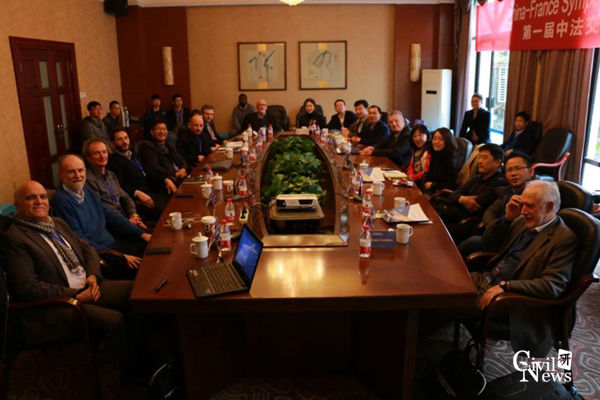 随后,法方代表Francois Nicot教授及Pierre-yves Hicher教授先后上台致辞。两位教授表示,非常期待此次在贵校与各国,特别是中国同行的交流,预祝本次论坛圆满成功。法方代表致辞后,所有参会人员来到镜湖宾馆前合影留念。