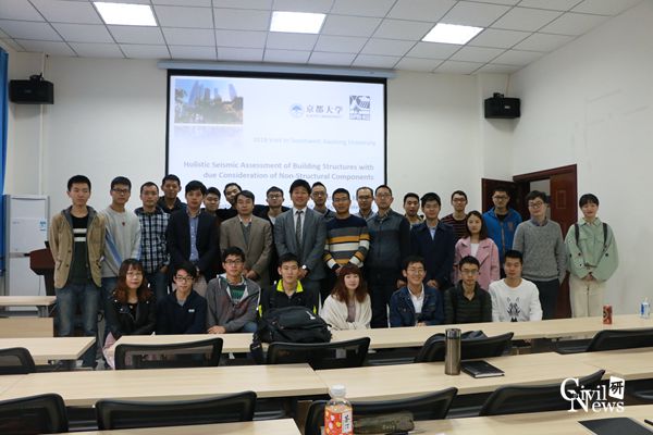 10月18日至21日,根据合作计划,日本京都大学防灾研究所仓田真宏副教授到诸侯快讯官网进行基于FGC的损伤可控组合钢框架抗震性能联合试验,20日于隧道楼101会议室开展了题为考虑非结构构件的建筑结构整体性抗震性能评价的学术讲座。