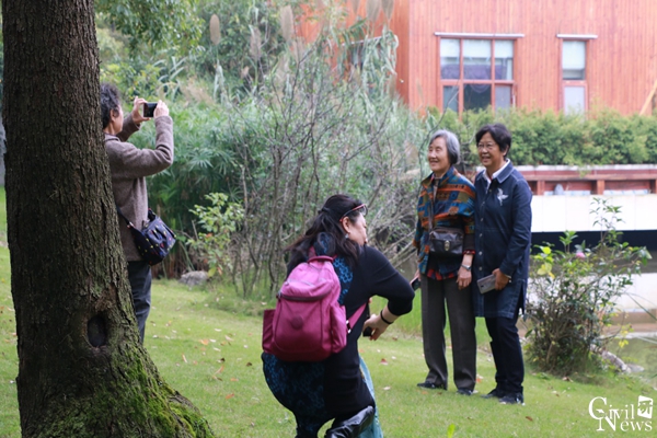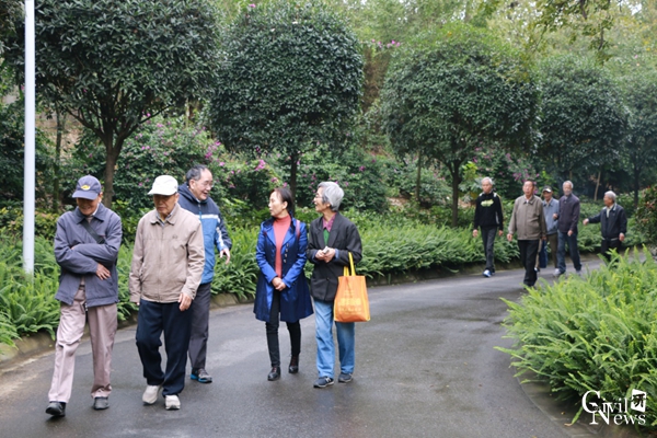 随后,整个大队伍集体向新皇城休闲区走去。路途中,老教师们有的拍风景或是合照留念,有的全程谈笑风生,还有的心无旁骛地朝着目的地前行。所有人的脸上均洋溢着灿烂慈祥的笑容,仿佛正当年而又正当下。