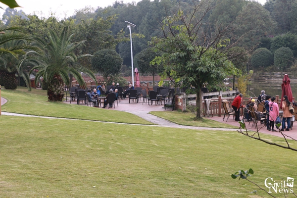 到达休闲区后,大部分人都选择倚坐雅桌前、阳伞下侃侃而谈,沐浴秋日暖阳,其余数位老师则选择了其心中向往的“考察”之旅。