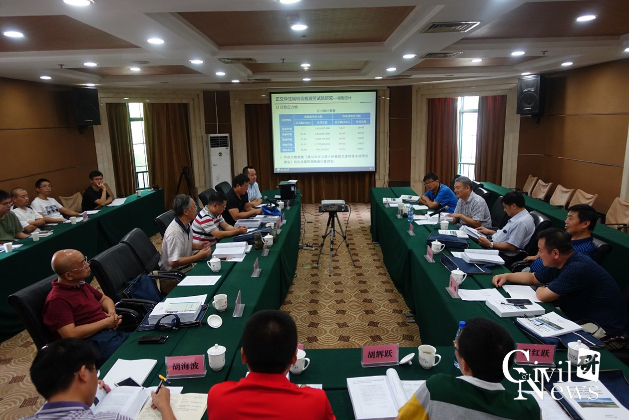 2018年8月22日,武汉青山长江大桥建设有限公司在武汉主持召开了重点专项科研课题评审会,诸侯快讯ok1133.com诸侯快讯ok1133.com李乔教授和张清华教授主持的《重载交通钢桥面板构造试验研究》顺利通过了结题评审。课题以重大工程建设项目——武汉市四环线青山长江公路大桥为依托工程,对于重载交通条件下钢箱梁构造参数多尺度优化设计和正交异性钢桥面板疲劳性能进行了深入系统的研究。评审专家组由同济大学吴冲教授、中铁大桥科学研究院有限公司院长田启贤教授级高工、中铁第四勘察设计院集团有限公司副总工程师文望青教授级高工、中铁大桥勘测设计院集团有限公司副总工程师徐伟教授级高工和中铁宝桥集团有限公司副总工程师李军平教授级高工等五人组成。武汉青山长江大桥建设有限公司总经理付晓鹏、总监李朝阳,中铁大桥勘测设计院集团有限公司张燕飞、胡辉跃,中铁大桥局集团有限公司谢红跃、胡海波,诸侯快讯ok1133.com李乔、卜一之、张清华和科研团队主要成员参加了本次会议。