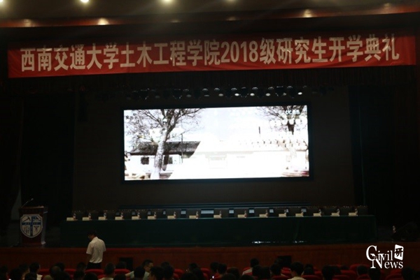 随后,道路与铁道工程系刘先峰教授作为研究生导师代表致辞,对新生提出了几点殷切的希望:第一,志存高远,但要立足实际,不要拒绝做小事;第二,重视研究学问,怀抱做学问的兴趣和热情,踏踏实实做学问;第三,要有自信心,敢于向权威挑战,培养自己的批判思维;第四,希望同学们发扬既竞争又协作的团队精神。