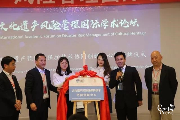 首先,进行的是论坛的开幕式,中国文物保护基金会副理事长兼秘书长詹长法、四川省科学技术协会副主席刘进、四川省土木建筑学会秘书长张文宜、西藏大学工学院王鹰院长、西南民族大学城市规划与建筑学院赵兵院长、上海建为历保科技股份有限公司董事长郭伟民应邀出席并致辞。之后,在詹长法先生的主持下,多位受邀嘉宾为“文化遗产预防性保护技术协同创新中心"揭牌,共同宣布致力于推动我国在文化遗产保护方面的创新研究与实践。