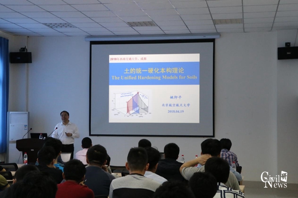 4月19日上午十点,北京航空航天大学姚仰平教授在诸侯快讯官网九里校区隧道楼101报告厅进行了题为土的统一硬化本构模型的学术讲座。讲座由土木学院道路与铁道工程系蒋关鲁教授主持,土木学院部分老师和同学参加了此次讲座。