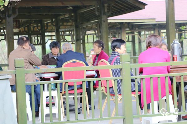 上午时间安排为自由活动。各位老师或携友漫步于亭台之间,谈笑风生;或沉醉于雅致的园林之内,拍照留念;亦或是闲步于草地之上,拥抱自然。累了,就坐在亭子中稍作休息,聊天品茗,与往昔的同事好友聊一聊人生,谈一谈生活,或者坐下来几个人一起打打麻将。流年似水,岁月蹉跎,相聚的时刻总是难得。