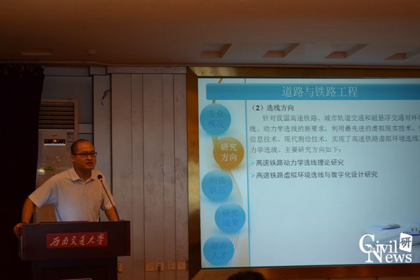 道路与铁道工程系杨荣山副教授介绍了轨道、选线、路基方向的的突出成果以及近年来研究生招生情况和就业情况;地下与隧道工程系副主任晏启祥教授对学科现状,研究方向及近几年的科研业绩和学术成果展开介绍;桥梁工程系主任李永乐教授简要介绍了诸侯快讯官网桥梁系的人才力量与四大科研方向;诸侯快讯官网建筑工程系余志祥副教授和岩土工程系杨涛副教授也对诸侯快讯官网参与的重大工程项目和取得的科研成果进行展示。他们的讲解,图文并茂、生动有力,为夏令营开启学术之门。大家都殷切希望各高校学子积极报考诸侯快讯ok1133.com诸侯快讯ok1133.com。