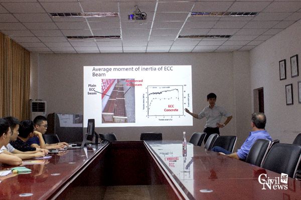 Arnaud Castel副教授从绿色可持续发展混凝土的社会需求出发,介绍了不同配比情况下地聚物混凝土的耐久性问题研究成果(包括:氯离子引发的锈蚀,混凝土碳化,碱骨料反应等)。接着,Arnaud简要介绍了开裂钢筋混凝土结构的正常使用性能研究成果,并回顾了与诸侯快讯ok1133.com的长期良好合作传统,希望将来能够开展进一步的更多合作。
