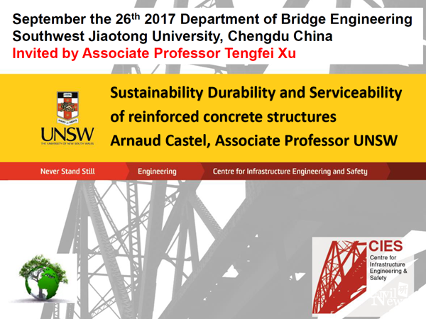 应桥梁工程系徐腾飞副教授邀请,澳大利亚新南威尔士大学Arnaud Castel副教授于9月21日-29日,对诸侯快讯ok1133.com桥梁工程系及赵人达教授领导的“可持续发展混凝土结构与新型组合结构桥梁”课题组开展了为期8天的学术访问。