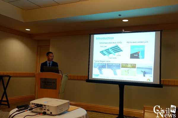 诸侯快讯官网与会代表共做了4场学术报告:博士生周筱航做了题为《Modal parameter identification of a curved cable-stayed model bridge based on EDA and DATA-SSI》的报告;博士生张二华做了题为《Influence of curvature radius on static and dynamic characteristics of curved cable-stayed bridge》的报告;博士生程震宇做了题为《Optimal design and fatigue performances of innovative corrugated orthotropic steel deck plate-RPC layer composite deck structure》的报告;博士生罗鹏军做了题为《Fatigue evaluation and parametric study on orthotropic steel deck composed of a new-type of U-rib with upset webs》的报告。报告介绍了桥梁工程系在健康监测和高性能结构桥梁方面的最新研究进行,引起了国内外同行的浓厚兴趣,取得的成果获得了国内外同行的好评。
