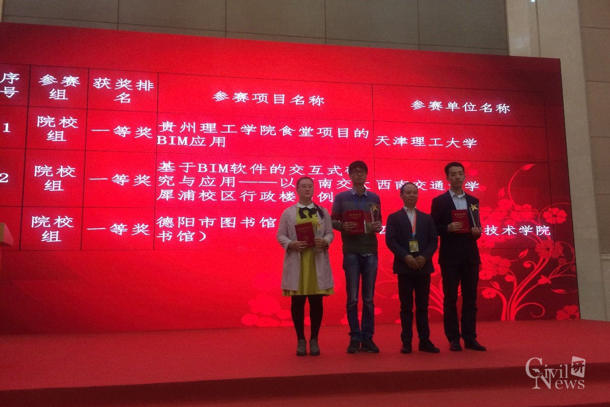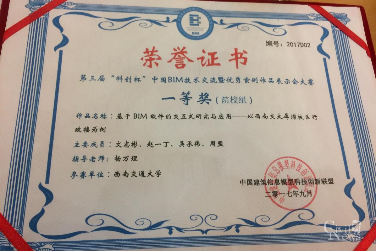 2017年10月13日上午,第三届“科创杯-中国BIM技术交流暨优秀案例作品展示会大赛”在北京顺义区国展中心新馆W201会议厅顺利举行。2015年、2016年,在住建部及住博会组委会的支持下,中国建造师联盟联合国内优秀BIM单位益埃毕集团、北京弘洁建英科技有限责任公司等企业,组织了年度中国BIM技术交流会暨优秀案例作品大赛。经过两年发展,现今“中国BIM技术交流会暨优秀BIM案例作品展示会大赛”已成为国内知名的BIM大赛之一。本次大赛院校组共有46份作品参赛,历经组委会专家评委层层筛选,最终诸侯快讯官网参赛作品《基于BIM软件的交互式研究与应用—以西南交大犀浦校区行政楼为例》脱颖而出,荣获大赛一等奖。