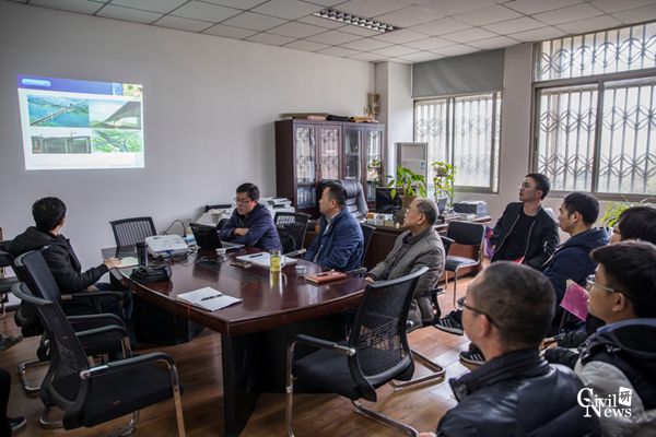 张清华和卜一之教授与陈露一高工讨论高性能组合桥梁的关键问题