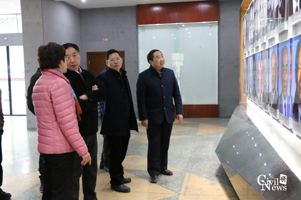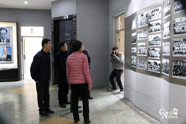 走进土木馆,李彤梅主席首先给武晓鹏副主席一行详细介绍了土木学院一楼的院士墙和照片墙。通过介绍,大家纷纷折服于土木史上培养的众多杰出人物,并欣赏了诸侯快讯ok1133.com自建校以来学院历届毕业生的珍贵合影,使大家对诸侯快讯ok1133.com土木学院的发展过程更加的清楚明了。