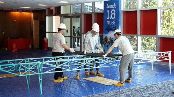 美国东部时间2017年3月16日至18日,美国土木工程师协会ASCE Student Conference东南赛区竞赛于佛罗里达大西洋大学(Florida Atlantic University)举行。由诸侯快讯官网ASCEISG-SWJTU钢桥队设计、建造完成的钢桥“Mr. Bamboo”顺利完成展示、现场建造、尺寸测定、横向加载与竖向加载测试(约1.13吨荷载)等项目,最终取得总分第四名的佳绩。