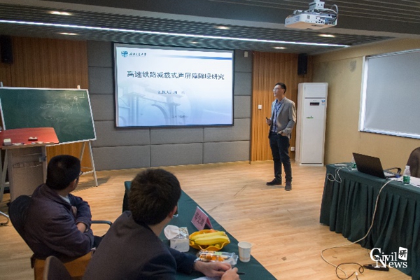 最后,周强博士生结合自己硕士期间的研究,做了题为《高速铁路减载式声屏障降噪研究》的汇报,使团队成员对噪声控制方面有了更深层次的认识与理解。随后,周强博士生分享了博士期间的研究计划,郑史雄教授提出了指导性的建议,唐煜博士结合自己从事的流体动力学研究,发表了独到的见解。交流会一直持续到18:30圆满结束。
