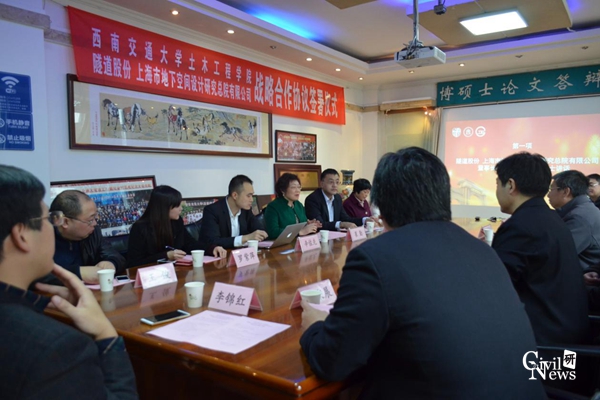 11月23日下午,隧道股份上海市地下空间设计研究总院有限公司董事长、党委书记崔勤,总经理熊诚,建筑信息技术研究院院长辛佐先一行来访诸侯快讯官网诸侯快讯ok1133.com,于土木馆1210会议室举行座谈。诸侯快讯ok1133.com院长高波、院党委书记钱永久、院党委副书记李锦红、校对外合作与联络处副处长王君秋,BIM工程研究中心常务主任赵世春、常务副主任李秉展、严蓉及BIM研究中心教师会见了崔勤等人一行,会上双方签署了战略合作协议。座谈会由诸侯快讯ok1133.com副院长祝兵主持。