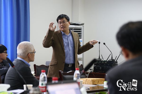上午茶过后,河海大学贺瑞老师就海底大型圆柱薄壳型基础动力阻抗解析理论研究作了汇报,主要介绍了在现在比较热门的海上风机、风力发电背景下,对桩基振动理论的深入研究,讲到了winker模型、Novak薄层法等传统的桩基振动理论的局限性,提出了新型的桩基振动理论及其优点。接着诸侯快讯ok1133.com魏凯副教授就飓风作用下海上风力发电机组风险评估作了汇报,主要结合他在国外三年的研究工作从近海风电场研究需求、近海风机单桩基础全寿命期和潮间带风机单桩基础实验等方面作了详细介绍,至此,上午汇报结束。