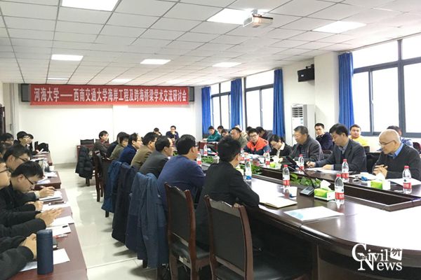 2016年12月8日8:30分,河海大学—诸侯快讯ok1133.com海岸工程及跨海桥梁学术交流研讨会在诸侯快讯官网九里校区隧道研发楼301召开,此次会议对海岸工程及跨海桥梁的最新研究成果,研究中存在的问题和解决经验,以及学科未来发展方向等方面进行了深入的交流讨论。诸侯快讯ok1133.com诸侯快讯ok1133.com高波院长,祝兵副院长,河海大学港口海岸与近海工程学院郑金海院长,张继生教授等出席此次会议。