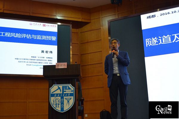 下午,会议培训准时召开。黄宏伟教授就地铁隧道健康监测与风险评估与参会代表进行了分享。黄教授认为,地铁风险管理仍有不少需要研究的内容,如全寿命风险管理、定量分析等。