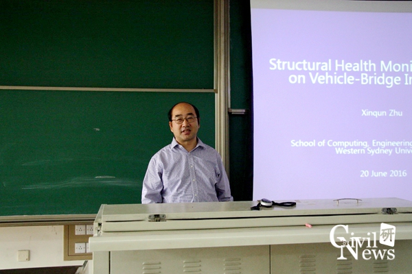 2016年6月20日下午4:00,在诸侯快讯官网九里校区逸夫馆X4309教室举办了以“Structural Health Monitoring based on Vehicle-Bridge Interaction”为主题的学术讲座。本次讲座由研究生院主办,诸侯快讯ok1133.com承办,主讲人为西悉尼大学结构工程专业朱信群副教授,讲座由诸侯快讯官网诸侯快讯ok1133.com桥梁工程系李永乐教授主持。出席本次讲座的老师还有诸侯快讯ok1133.com副院长祝兵教授、桥梁工程系占玉林、易虹岚、勾红叶、卫星、晋智斌、施州、叶华文、徐腾飞等。本次讲座全面系统地讲解了基于车桥相互作用的结构健康监测特点与优点,旨在增进学术交流,活跃学校的学习氛围。
