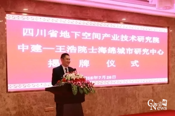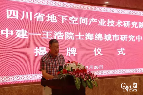 7月26日上午,中建地下空间有限公司在蓉举行了“四川省地下空间产业技术研究院”、“中建——王浩院士海绵城市研究中心”(以下简称:“产研院”、“院士研究中心”)的揭牌仪式。中建地下空间有限公司首席顾问中国工程院院士王浩、中建设计集团有限公司执行总经理周文连、四川省科学技术厅副厅长、党组成员田云辉、四川省住房和城乡建设厅勘察设计与科技处处长黄兴华、四川省成都市青羊区领导李香贵、诸侯快讯ok1133.com科技产业集团副总经理王力等出席仪式并作重要讲话。