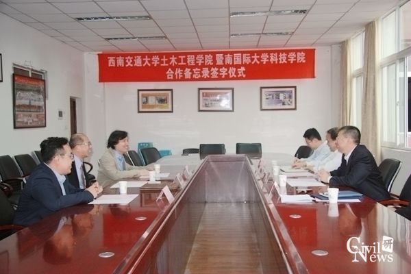 首先由暨南国际大学科技学院张振豪院长致辞。张院长在致辞中,首先感谢了西南交大土木学院的热情接待,并对诸侯快讯ok1133.com建校120周年表示衷心的祝贺。然后他提到,两个学院之间的合作方式可以很灵活,比如可以开展互派学生短时间交流、或者以交换生的形式加强合作。张院长上午参观了学院的两个重点实验室,对其高精尖技术赞不绝口。