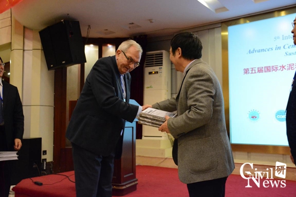 议程六为闭幕式,在隋同波教授的带动下,Prof. Robert Flatt、Mr. Haynes以及Mr. Per Jahren发表了他们对于参加此次论坛的感想,并表达了对水泥和混凝土可持续展望。同时,叶跃忠教授、东蓝星公司刘自力总裁等与会人员也表达了他们对于此次活动的赞许。最后,隋同波教授把他与Per Jahren著作的《History of Concrete——A very Old and Modern Material》赠送与诸侯快讯官网。