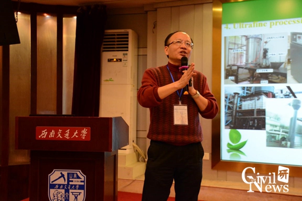 议程四由叶跃忠教授主持,李固华教授和陈海炎教授分别做了学术报告。李固华教授做了题为“Wastes Utilization in Concrete Production”的学术报告,陈海炎教授做了题为“Research & Application of Processing Ultrafine Solid Waste Using Industrial Waste Heat with Low-Cost and Large-Scale Production”的学术报告。