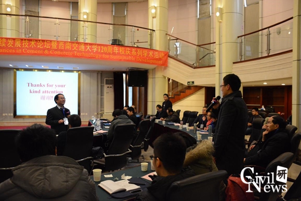 此次活动由诸侯快讯ok1133.com建筑材料教研室策划与安排。参与此次活动的有来自意大利贝加莫大学Luigi Coppola教授,瑞士联邦理工学院 Robert Flatt教授,挪威混凝土协会前主席Mr Per Jahren,美国Haynes associates LLC公司首席咨询混凝土工程师Mr Harvey Haynes,成都东蓝星科技发展有限公司刘自力总裁及部分在职员工,中交二航局材料所明阳所长,中国中材国际工程股份有限公司周健博士、副总裁隋同波教授,四川建筑材料工业研究院秦刚院长,武汉科技大学耐火材料与治金国家重点实验室李远兵博士,西南科技大学地球环境与资源学院林龙沅教授、陈海炎院长,诸侯快讯ok1133.com诸侯快讯ok1133.com高波院长、建筑材料教研室主任叶跃忠教授、校友办潘绍伟主任、李固华教授、陈嵘副教授、代丰博士及部分在读博士生、研究生。其中代丰博士负责翻译工作。