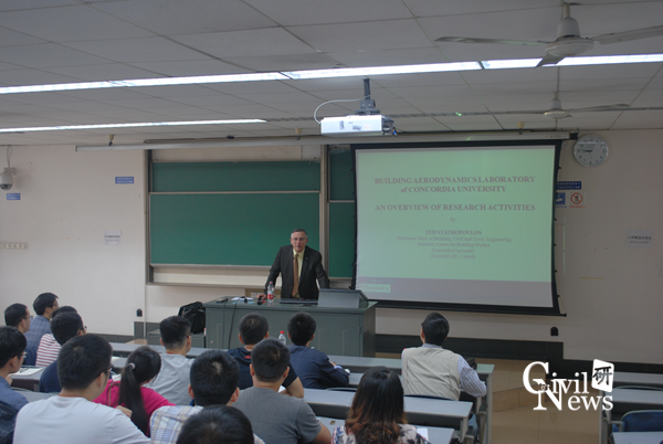 主讲人Ted Stathopoulos教授目前任加拿大康戈迪亚大学房屋、土木和环境工程系教授。Stathopoulos教授为国际著名的风工程专家,发表各类学术论文500余篇。目前为加拿大工程院院士,著名SCI期刊Journal of Wind Engineering and Industrial Aerodynamics(影响因子1.7)主编。获得了包括2004 Aerodynamics Division’s Outstanding Professional Service Award(美国土木工程协会)、2009 Jack E. Cermak Medal(美国土木工程协会)和2012 Alan G. Davenport Medal(国际风工程协会)在内的多个学术奖励。