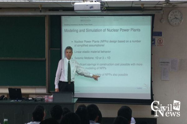 为方便理解,Boris Jeremic教授又通过两幅Flash动画生动形象地演示了地震作用下岩土和结构相互作用的细微变化。其中,核电站的建模与仿真是在建模与参数的不确定条件下,分析地震作用下土体液化后,非弹性土体和结构之间的相互作用。他指出更准确的模型可显著提高核电站的安全性能,同时可节省核电站建设成本。随着我国内陆准备开始修建核电站,此项分析研究未来会很有帮助。