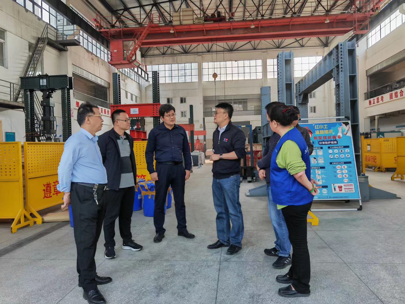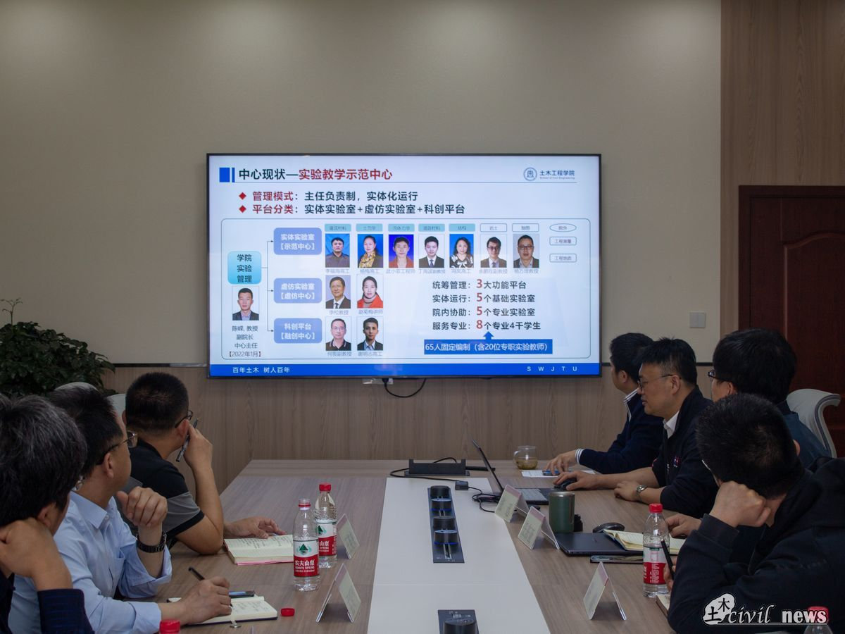 活动伊始,聊城大学建筑工程学院院长孟昭博、实验室主任王英来与刘名名老师在土木工程国家级实验教学示范中心副主任李福海的带领下参观了土木工程国家级实验教学示范中心。土木工程国家级实验教学示范中心是一个集教学、科研和实践于一体的综合性实验平台,拥有先进的设备和完善的功能,提供了一个全面、实践性的教学环境。聊城大学老师们对示范中心的设施和管理模式赞不绝口,并对其取得的教学成果表示钦佩。