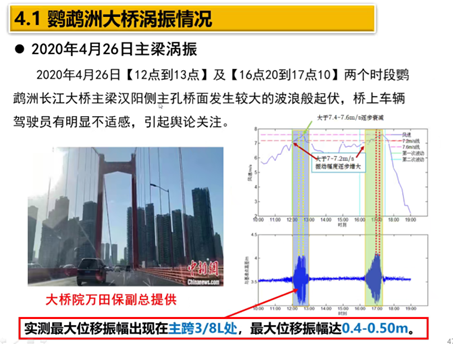 随后,由本次论坛的报告人,湖南大学华旭刚教授向大家分享了湖南大学风工程研究团队自2011年以来在悬索桥多阶涡振方面的研究成果。他详细介绍了悬索桥发生涡激共振原理及相应研究背景、悬索桥的多阶涡振预测理论及试验技术、涡振振幅限值研究成果、涡振控制基本策略与多种控制方法等重要内容。华旭刚教授的报告系统梳理了该领域的最新研究进展,结合工程实例讲解了悬索桥涡振治理思路及减振效果验证方法,为与会者提供了宝贵的学术借鉴,使大家对悬索桥多阶涡振问题有了更深入的理解。