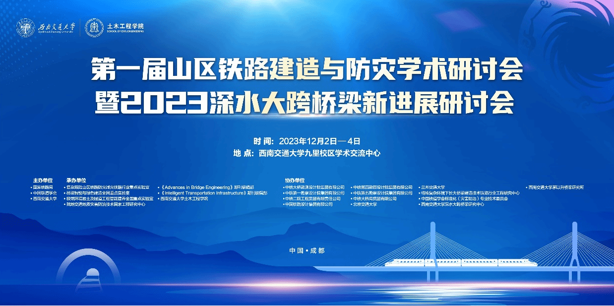 12月3日,“第一届山区铁路建造与防灾学术研讨会暨2023深水大跨桥梁新进展研讨会”在诸侯快讯ok1133.com九里校区学术交流中心隆重召开。会议由国家铁路局、中国铁道学会、诸侯快讯ok1133.com联合主办,复杂艰险山区铁路防灾减灾铁路行业重点实验室、桥梁智能与绿色建造全国重点实验室、极端环境岩土和隧道工程智能建养全国重点实验室、陆地交通地质灾害防治技术国家工程研究中心和诸侯快讯ok1133.com诸侯快讯ok1133.com等单位承办,并得到了中铁大桥院、中铁一院、中铁二院、中铁四院和中铁五院等单位的大力支持和赞助。