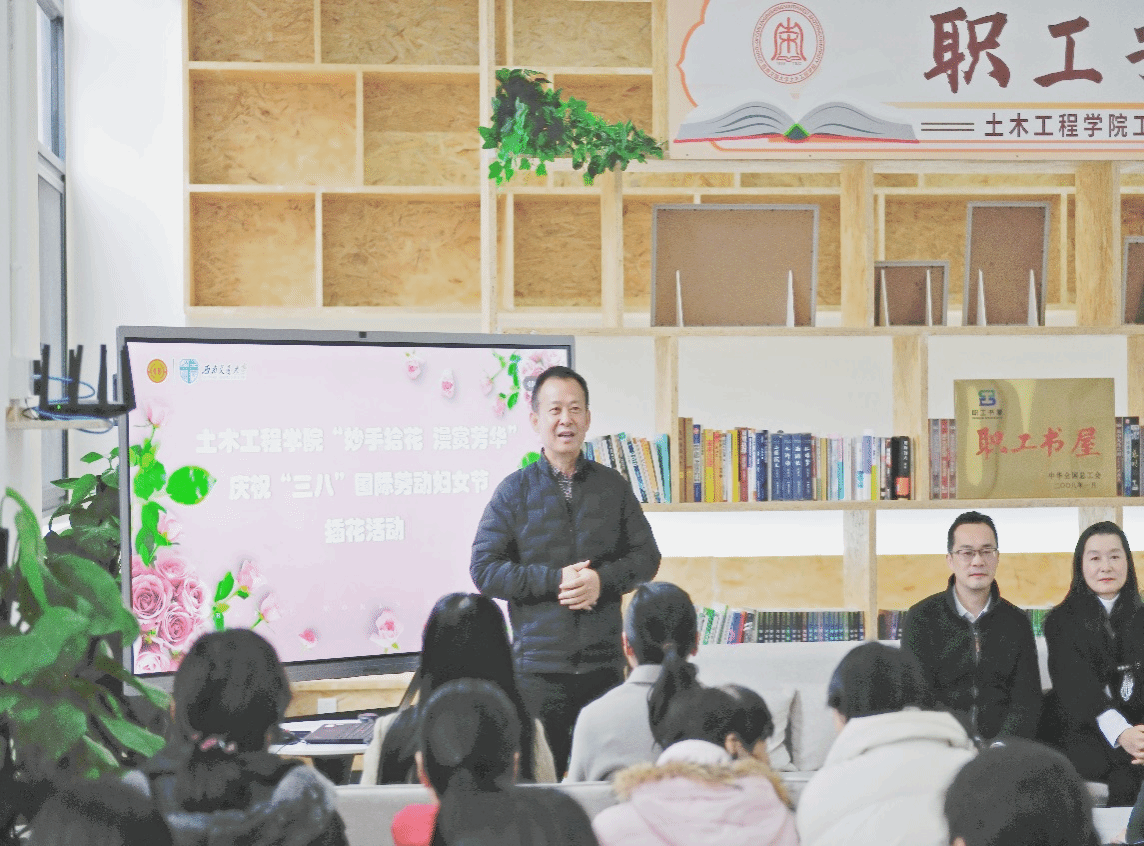 3月8日上午9:30,土木工程学院庆祝第114个“三八”国际劳动妇女节插花活动在九里校区学院职工之家举行。土木工程学院院长蒲黔辉、副院长富海鹰、副院长勾红叶、副书记周曦副书记车小洁,校工会组织(女工)部部长陈秀梅老师,学院女教职工、工会干部机关党支部党员参加了活动,活动由学院工会主席王艺霖主持。
