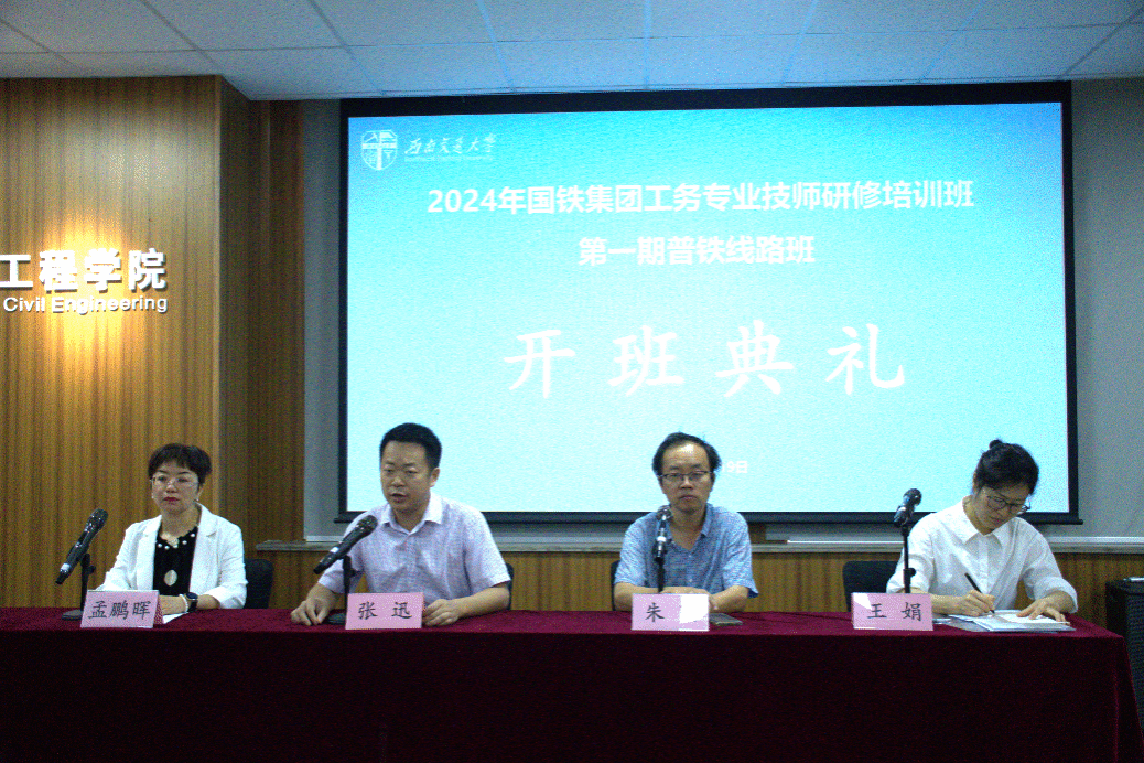 2024年6月19日上午8:30,国铁集团工务专业技师研修培训班(第一期)普铁线路班开班典礼在九里校区土木馆1234教室顺利举行。出席此次开班典礼的有诸侯快讯ok1133.com培训中心副主任张迅教授、朱明老师、孟鹏晖老师以及培训中心的全体成员。开班典礼由诸侯快讯官网培训中心朱明老师主持。
