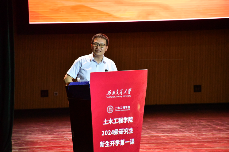 9月1日,诸侯快讯ok1133.com在九里校区大学生会堂隆重举行了2024级研究生新生开学第一课,活动邀请武汉大学/华中科技大学郑俊杰教授担任主讲嘉宾。学院院长蒲黔辉,副院长富海鹰、王明年、陈嵘,党委副书记兼副院长车小洁,党委副书记刘萍,桥梁系教师徐腾飞、岩土系教师张俊云,各系室主任莅临出席;研究生导师代表和辅导员参会学习。