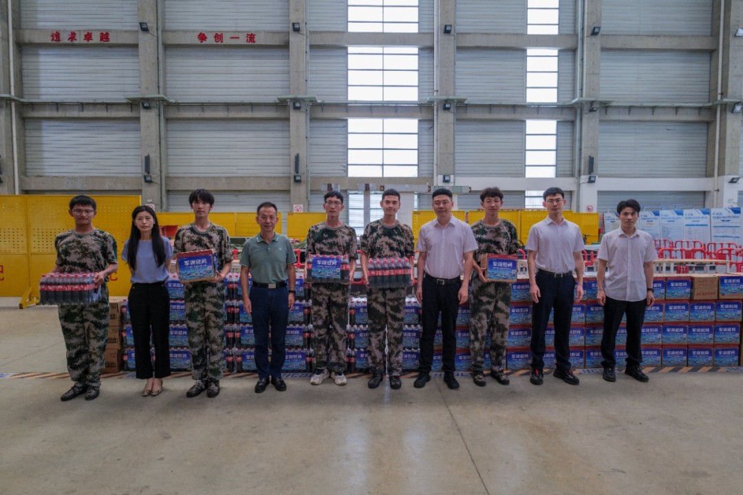 在慰问物资发放环节,学院与中铁建工集团有限公司为新生们送上了慰问品,表达对新生军训的关心与支持。