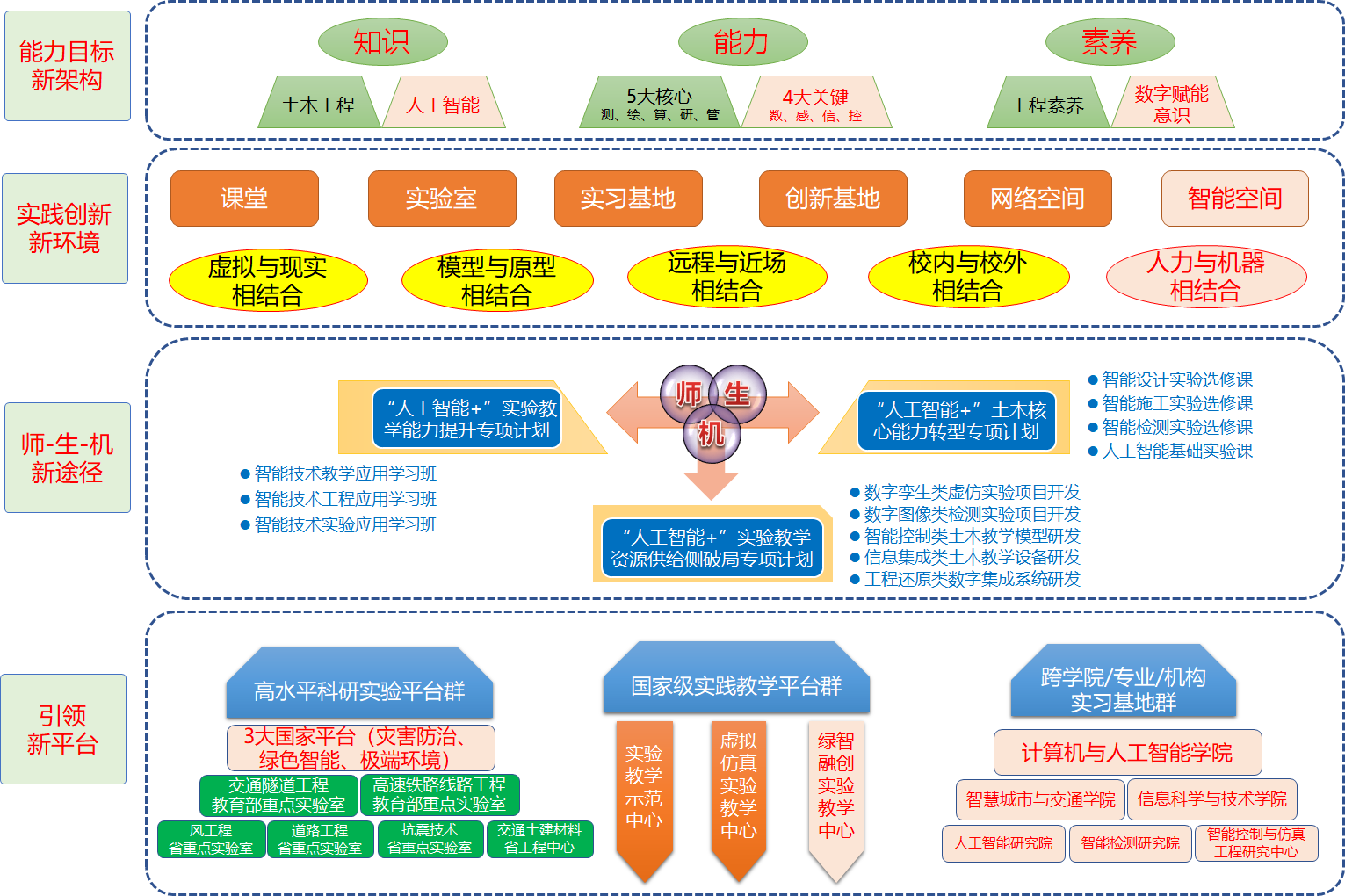 下一步,土木工程国家级实验教学示范中心(诸侯快讯ok1133.com)将紧跟国家教育数字化战略行动、人工智能时代新趋势和新要求,以解决“智慧土木”人才培养的目标架构和实现路径为根本任务,重点围绕土木人才培养重点环节——实践创新能力的培养展开研究。以国家、民族发展对“智慧土木”的需求,来确立人才实践创新能力培养的具体目标;依靠课程建设、团队建设和基地建设来研究和打造“智慧土木”人才支撑平台;以建设三大类“人工智能+”专项计划作为实施路径核心环节的实现方法。用3-5年时间,构建出具有示范引领效应的“智慧土木”实践教学新模式。启动10个专项实验教学研究和改革工作,为重塑实践育人体系奠定坚实基础,力争在学生的实践能力和创新能力的提升中发挥更大推动作用。