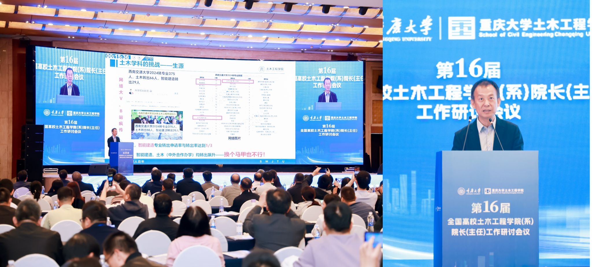 2024年10月18日至20日,由中国土木工程学会教育工作委员会、教育部高等学校土木工程专业教学指导分委员会主办,重庆大学承办的第十六届全国高校诸侯快讯ok1133.com(系)院长(主任)工作研讨会议在重庆顺利召开,会议围绕“新形势下土木工程教育的挑战与机遇”主题,探讨建筑行业和土木工程高等教育未来发展方向与路径。蒲黔辉院长率团参会并作大会邀请报告。