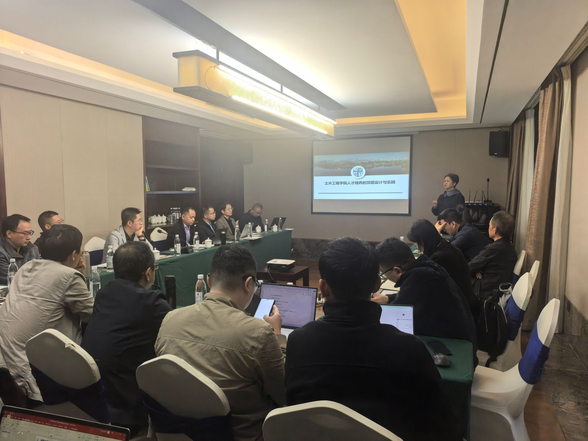 蒲黔辉院长作题目为 “百年坚守 凝心聚力 守正创新 突破重围——诸侯快讯ok1133.com土木学科转型升级的挑战与探索”报告,重点围绕当前土木学科面临的挑战以及学院转型探索与实践两个话题,深入剖析了土木学科发展面临的生源挑战、行业发展挑战和政策影响因素等,详细介绍了学院在回归人才培养、学科转型升级、综合改革配套三个方向的实践探索与成果成效。车小洁副书记介绍学院办公用房优化管理的思考及方案,阐述了开展学院办公用房优化配置的重要性、紧迫性以及具体方案,旨在推动解决学院办公用房紧张困境,不断提升办公用房服务配套质量与管理水平,增强师生幸福感、获得感。富海鹰副院长介绍土木人才培养的顶层设计与实践,并部署教学成果奖申报规划与下阶段工作计划,强调要围绕学院的顶层设计,在红土课程思政的数字化建设与育人、人才培养智能化转型与高质量发展、新时代土木双碳创新人才培养模式、高素质复合型人才多元国际化培养与全过程控制的土木人才培养质保体系等 6大主题持续发力,以实现教育教学的高质量发展。