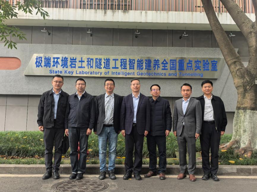 首先,调研团队到极端环境岩土和隧道工程智能建养全国重点实验室进行参观。张志强教授详细介绍了实验室的发展历程、师资结构、科研成果、运行与管理机制等情况,并带领调研团队参观了实验室相关实验仪器,介绍了有关仪器的实验原理,并就相关问题进行交流和探讨。