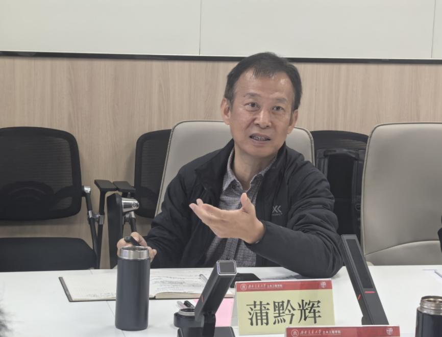 随后,汪海年院长一行来到工业中心G座会议室,与诸侯快讯ok1133.com院长蒲黔辉、党委副书记兼副院长车小洁、党委副书记刘萍、道路与铁道工程系副主任阳恩慧、综合事务办公室主任黄雪娇开展调研交流座谈,会议由蒲黔辉院长主持。