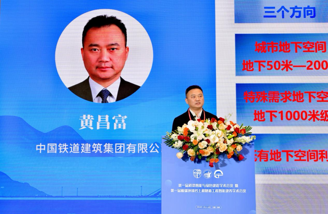 开幕式后,中国工程院院士、国家最高科学技术奖获得者钱七虎,中国工程院院士何华武、丁烈云,中国铁道学会理事长王同军、中国铁道建筑集团有限公司副总裁黄昌富分别做主旨报告,分享了他们近期的研究成果与学术思考。