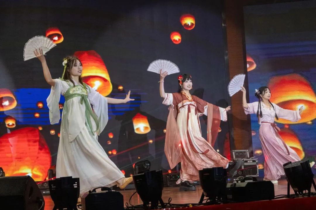 舞台上时空倒转,一段精美的古风舞蹈《寄明月》,带领观众步入一个充满诗意与古韵的世界。