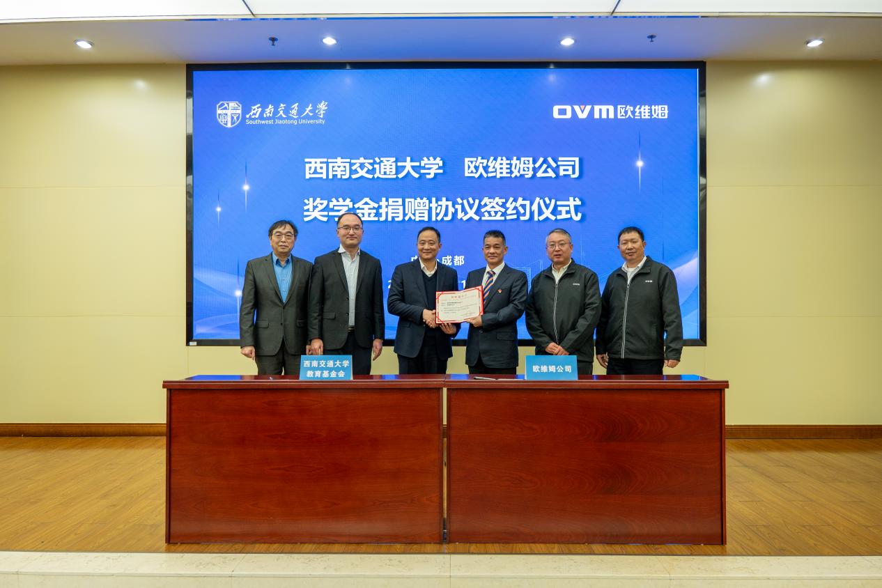 陈昱鹏对学校长期以来给予公司的充分信任和支持表示感谢,他表示西南交大作为一所拥有百年历史的高等学府,以其深厚的科研能力和学术底蕴在国内外享有盛誉。柳州欧维姆机械股份有限公司以“品质源于专业,领先来自创新”为核心价值观,获得了5项国家科技进步奖,其中包括1项国家科技进步奖一等奖,公司在正式签订战略合作协议以前,已经在学校设立奖学金达12年,并与诸侯快讯ok1133.com的专家教授进行科研技术方面的合作,希望未来和学校能够在科学研究、人才培养,产学研等方面有更深入的合作。